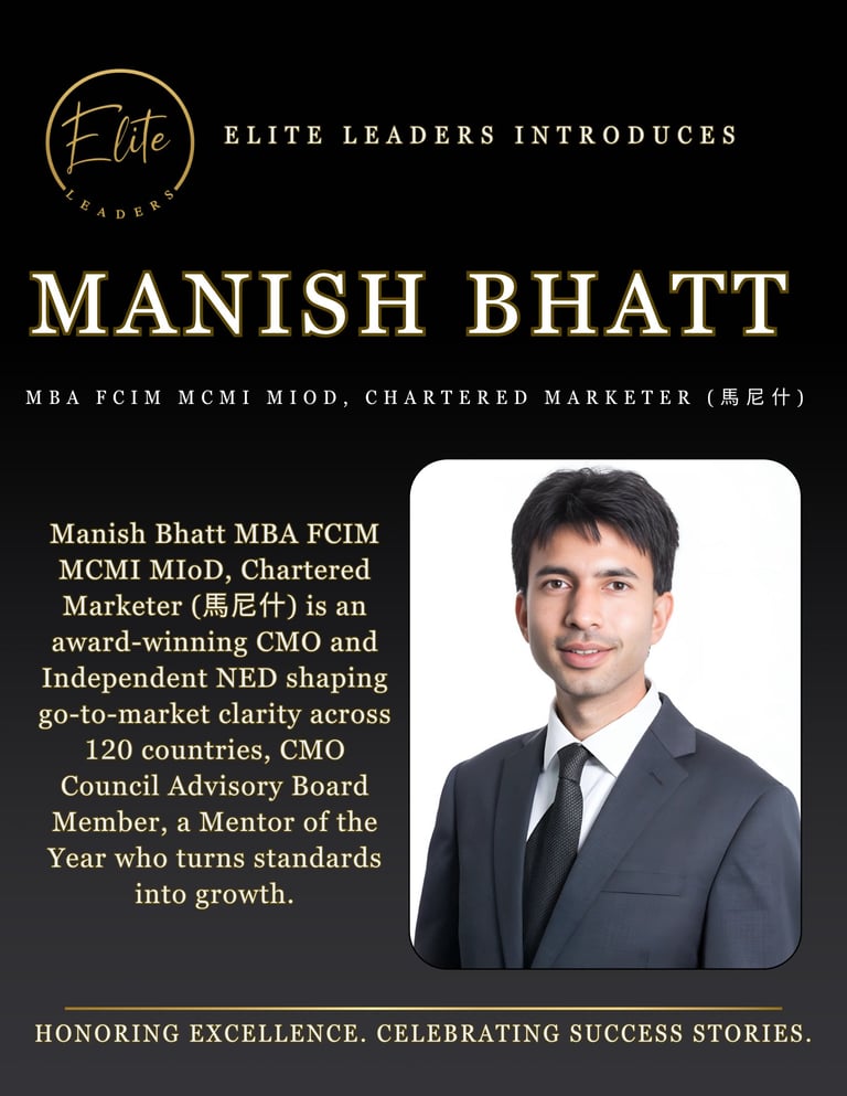 EliteLeaders.Club is pleased to spotlight Manish Bhatt, an award-winning CMO and board-level advisor whose stewardship, consistency and global perspective continue to shape modern marketing.