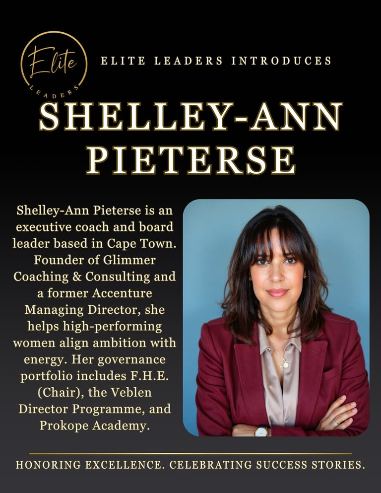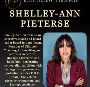 EliteLeaders.Club is pleased to spotlight Shelley-Ann Pieterse, an executive coach and board leader whose stewardship turns intent into impact.